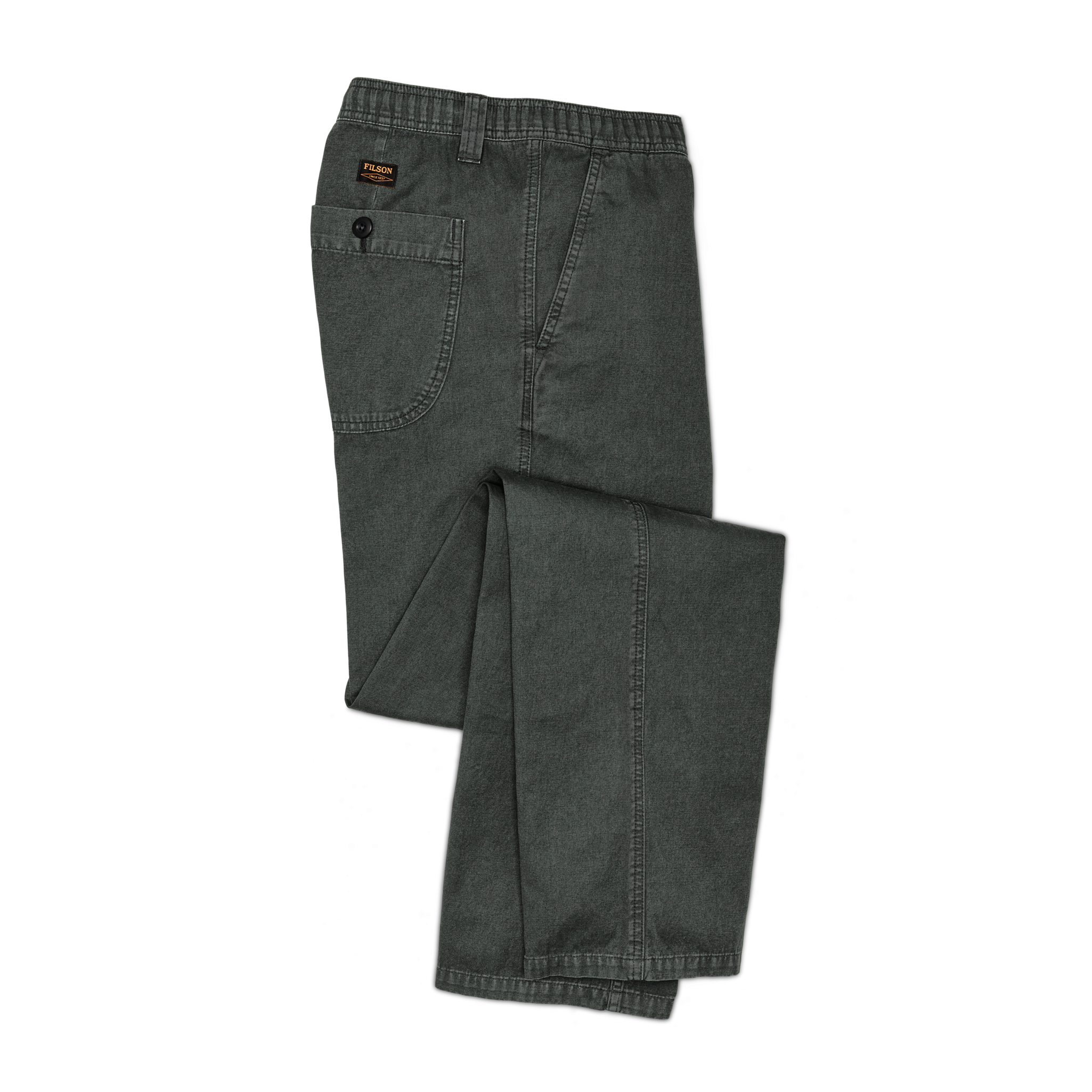 The tight weave of our Oakville canvas provides comfort in warmer conditions and the durability to withstand rugged use. Classic slash-front pockets are easy to access, and button closures keep valuables secure in the back. The waistband features beltloops plus hidden elastic and a drawstring for secure beltless wear. Garment-washed for shrinkage control and broken-in comfort from the first wear. Zippered fly and button-close waist.