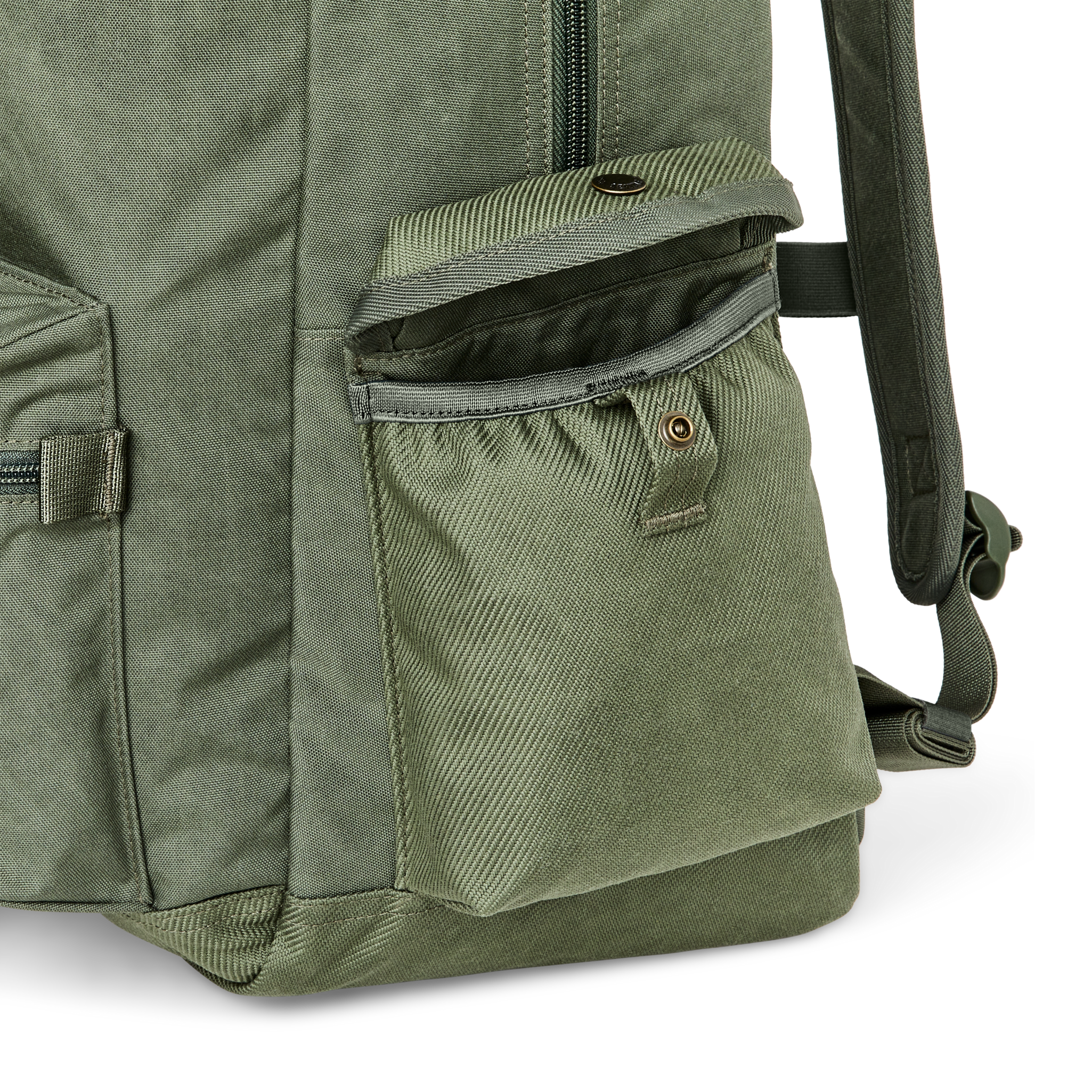 Introducing the Surveyor 36L Backpack weighing in at just over two pounds. It’s made from lightweight 500D Cordura nylon in a canvas weave similar to our iconic Tin Cloth, plus 1000D Cordura woven like our tried-and-true Rugged Twill. Both of these highly abrasion-resistant materials are dry-waxed to provide the legendary water resistance of our heritage waxed cottons.