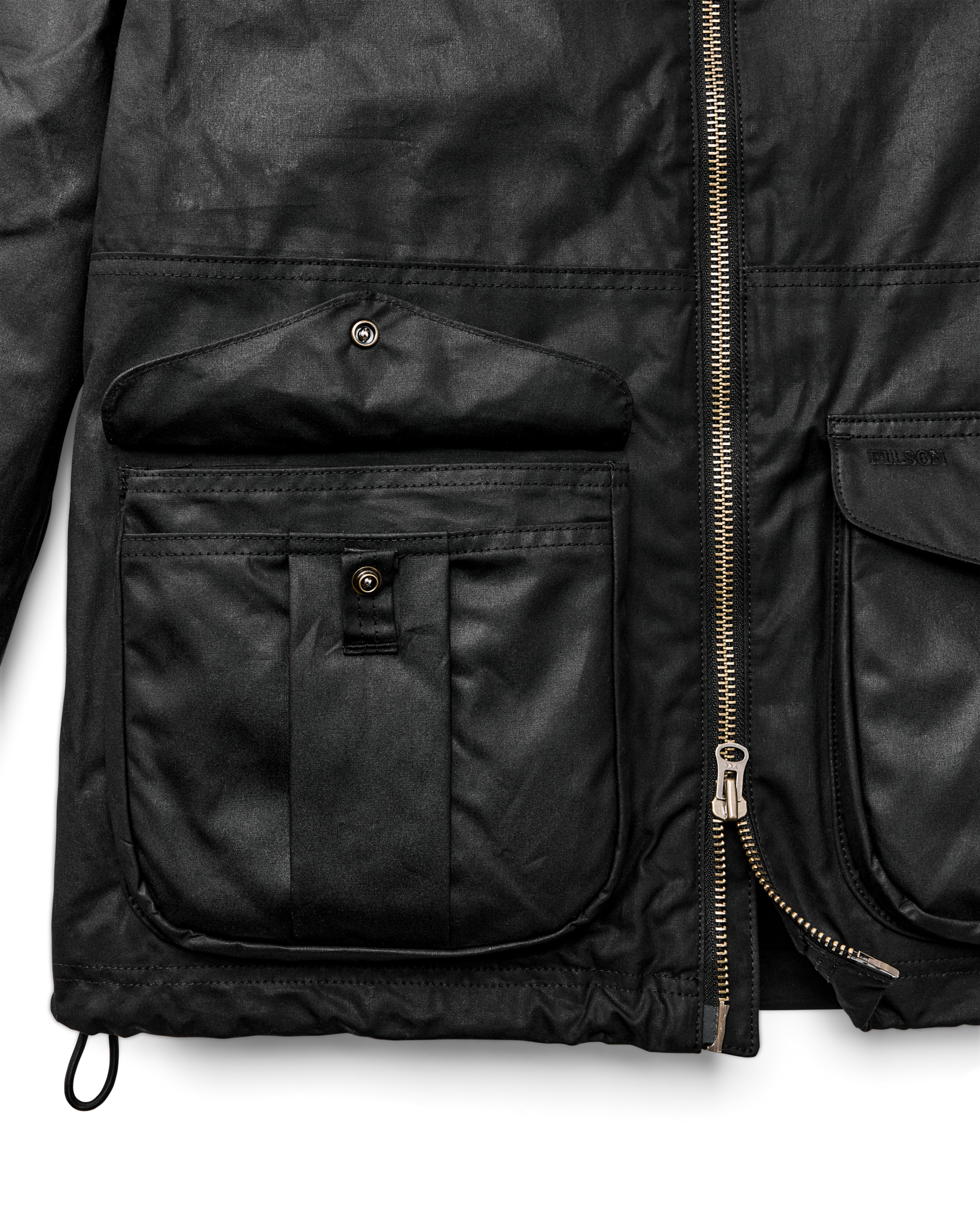 Made with our signature Cover Cloth waxed cotton, this raincoat is based on a favorite in our archive The torso is lined with lightweight canvas and the sleeves with easy-layering polyester. Large expandable cargo pockets have plenty of room for essentials and are protected by snapped flaps. The collar is lined with cotton corduroy for comfort against the skin and can be secured with the snapped throat latch. Two-way front zipper. Snap-tab adjustable cuffs.